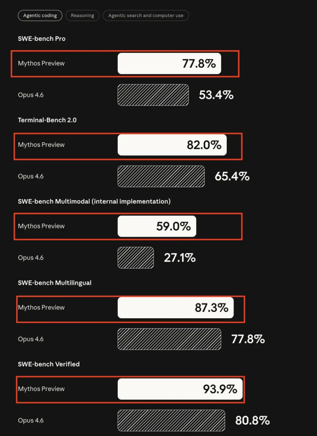 说人话就是由于这个模型太强了要采取安全测试模式,只给认可的机构内部使用,不对外开放,有多强呢,大家直接看数据,代码和推理能力吊打opus 4.6: